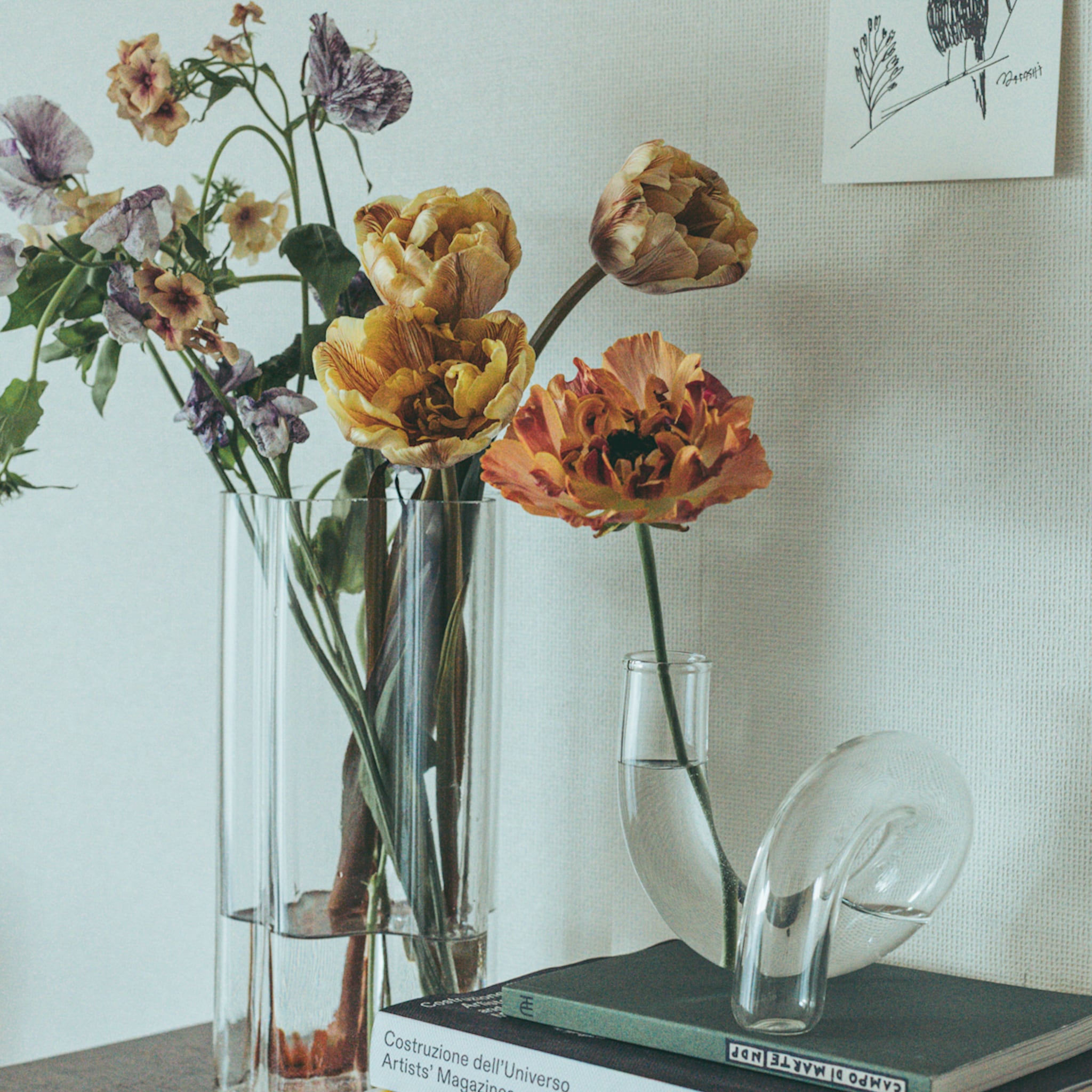 ガラスの曲線が美しい、アートピースのような一輪挿し。