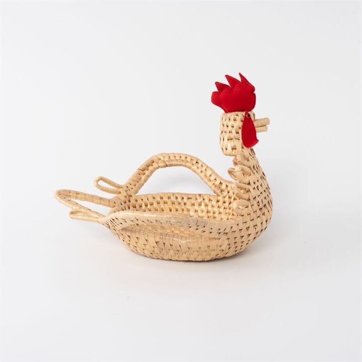 “ちょっととぼけた表情がクセになる、チキン型の収納バスケット“