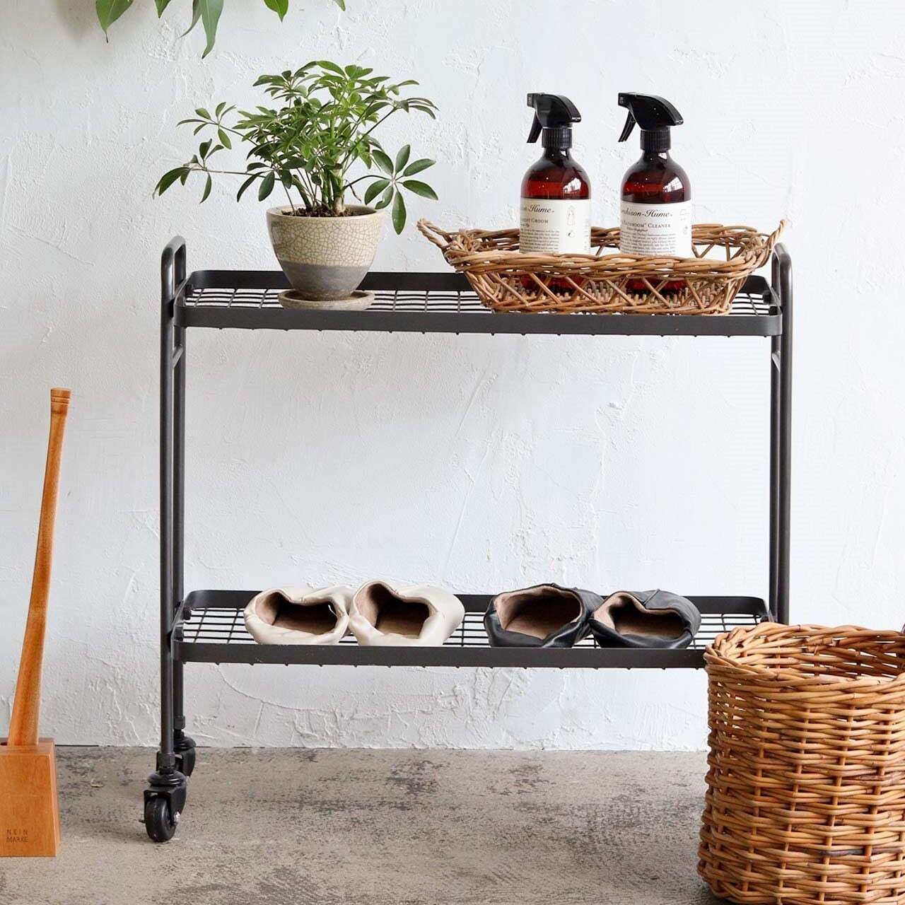 ブラックアイアンの落ち着いた存在感が、どんなお部屋にも自然に馴染んでくれるワゴンです。