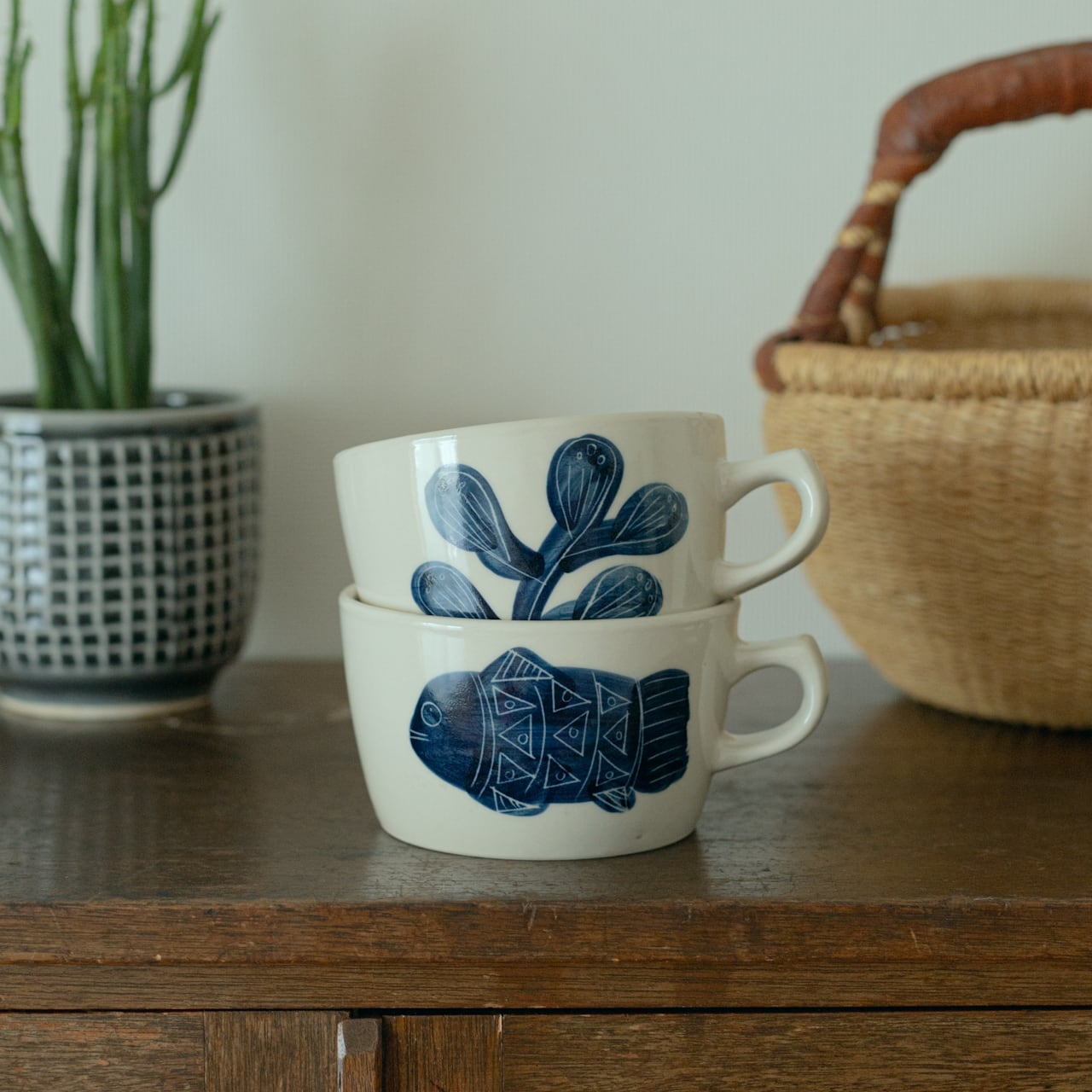 葉柄はのびやかで優しくて、魚柄はちょっととぼけた表情が愛おしくて…。