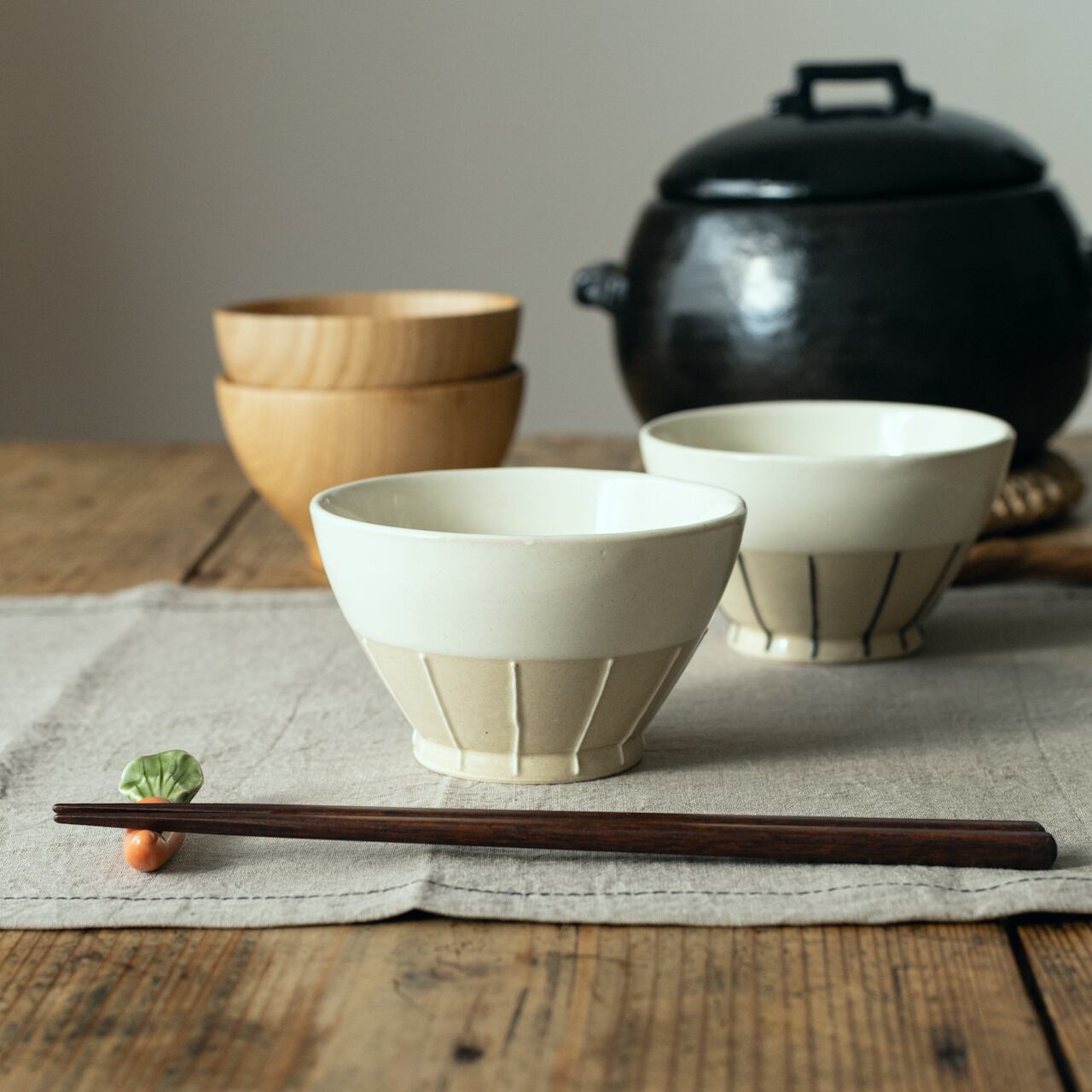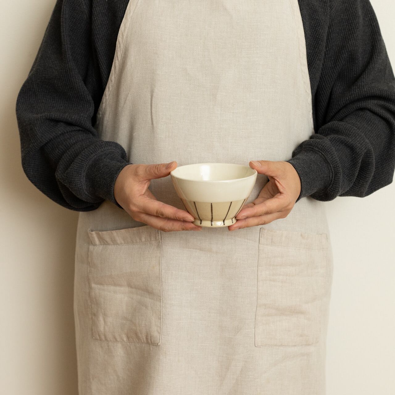 ストライプのラインが手仕事のぬくもりを感じさせつつ、モダンな雰囲気もあるデザイン。毎日の食卓に、ちょっとした遊び心をプラスしてくれる飯碗です。